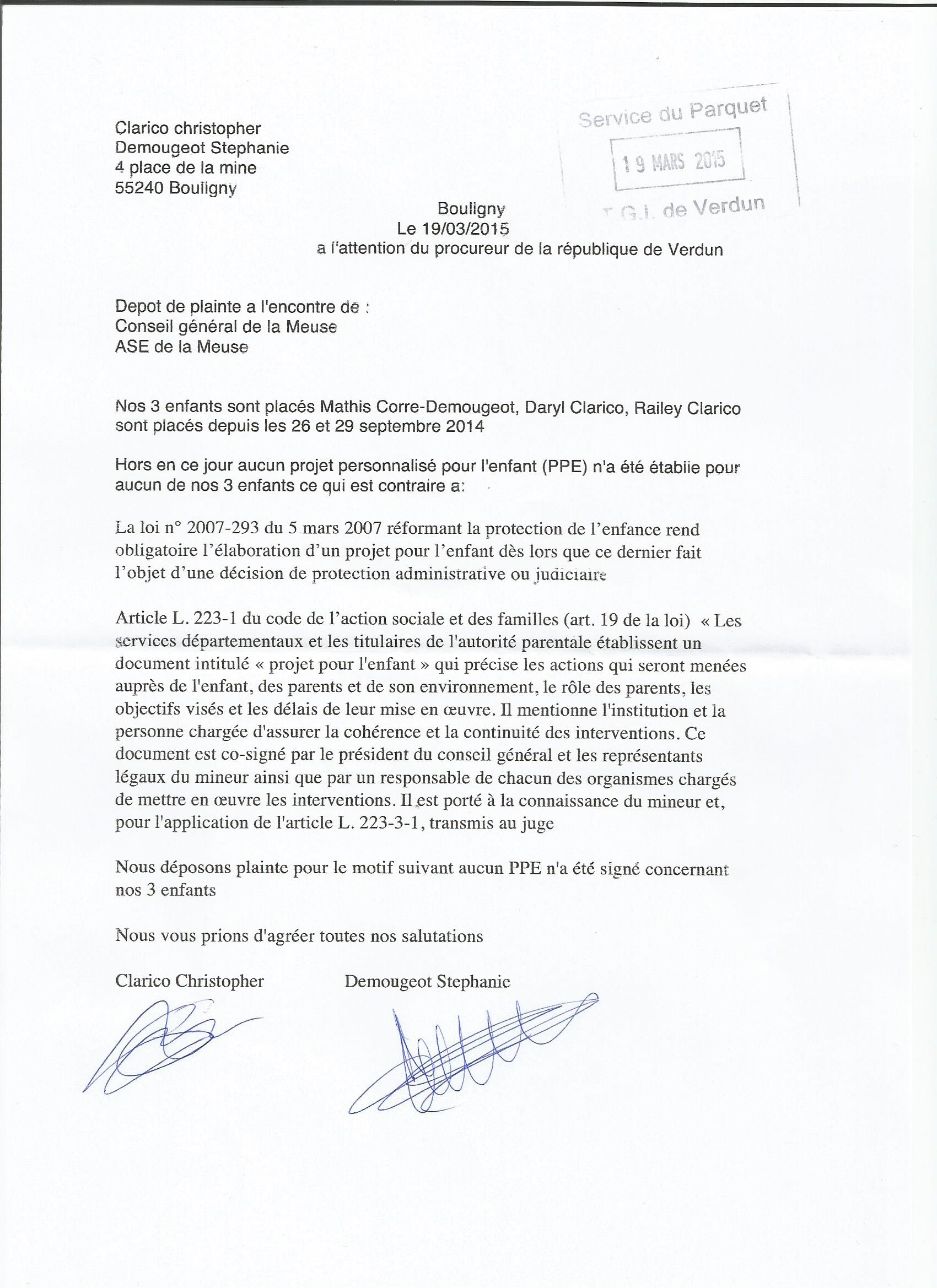 Le juge des enfants, Michael Pascal de Verdun ne tient aucun compte de la plainte tandis que les Services Sociaux du département de la Meuse ne respectent rien ni personne. Seul compte le nombre de dossiers pour justifier les emplois et les salaires.
